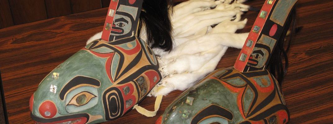 Initially, the Killer Whale clan crest hat, or Kéet S’aaxw, seems indistinguishable from the model beside it. Both depict a killer whale emerging from the ocean, vividly rendered in shades of red and turquoise as streams of water, represented by abalone shells and hair, flow over its body. Though there are minor differences in texture and edge […]