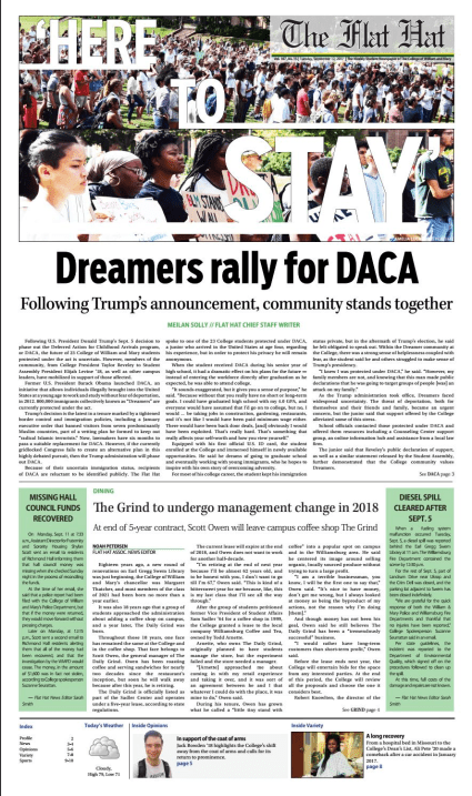 Following U.S. President Donald Trump’s Sept. 5 decision to phase out the Deferred Action for Childhood Arrivals program, or DACA, the future of 23 College of William and Mary students protected under the act is uncertain. However, members of the community, from College President Taylor Reveley to Student Assembly President Elijah Levine ’18, as well as […]